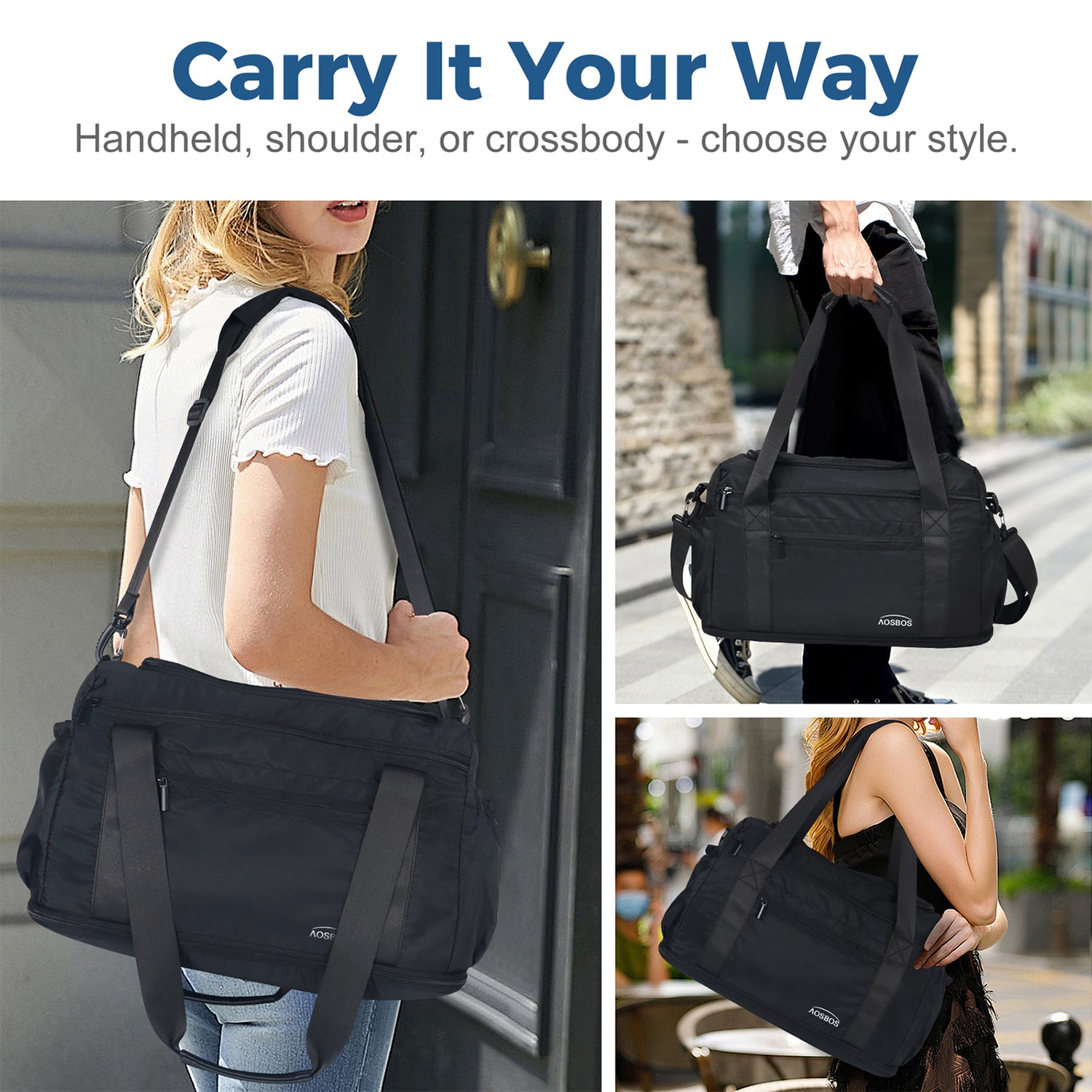 Aosbos Bags for sports - Expandable Weekender Bag for Airplanes, Carry On, Overnight, and Personal Item Travel