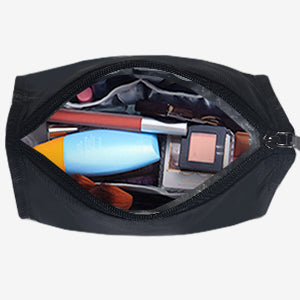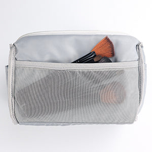 The translucent mesh pocket holds your makeup brushes, keeps your makeup bag neat and tidy