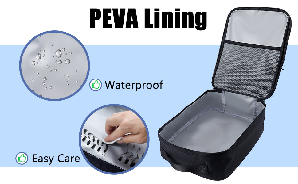 Distinguishing itself from other brands, while many rely on thin polyester linings or lack any lining at all, our shoe bag boasts a comprehensive, thickened PEVA lining throughout. Effortlessly clean and maintain, rest assured your shoes won't soil the interior of your shoe bag!