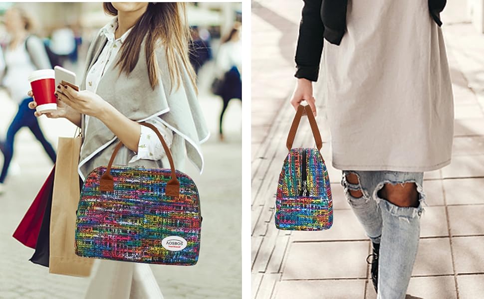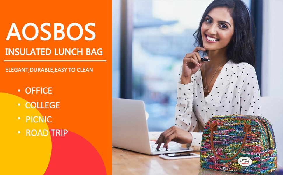 Aosbos 女士保温午餐盒 - 保温午餐手提冷藏袋,可重复使用的餐食准备容器,黑色